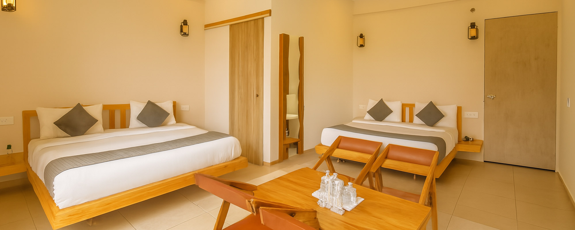 Welcome to our spacious 460 sqft Family Suite, featuring two double beds for your comfort. Unwind and enjoy the harmonious blend of relaxation. Whether with children or friends, our Family Suite offers a perfect sanctuary. Experience a delightful stay, where comfort and connection come together in this inviting space.