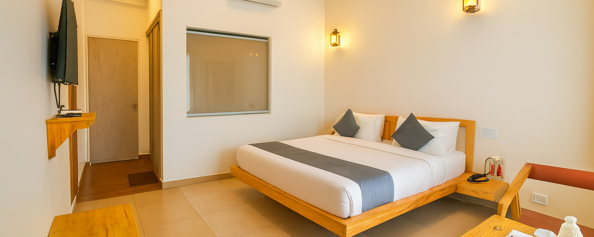Embrace ultimate luxury in our 320 sqft king room with a large glass pane framing awe-inspiring mountain views from your bed. Immerse yourself in nature's beauty and experience serenity and comfort at our resort. With a harmonious blend of opulence and scenic vistas, your stay promises to be unforgettable.
